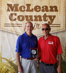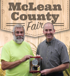 Larry Sheppelman and Lyn Nebel received Special Clover recognition for their dedication and hard work as McLean County Fair employees. Mike Swartz, McLean County Fair manager presented the awards.
