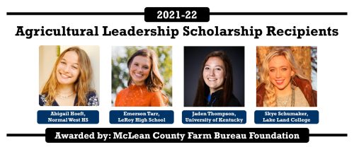 McLean County Farm Bureau Foundation is pleased to announce the 2021-22 Agricultural Leadership Scholarship recipients.