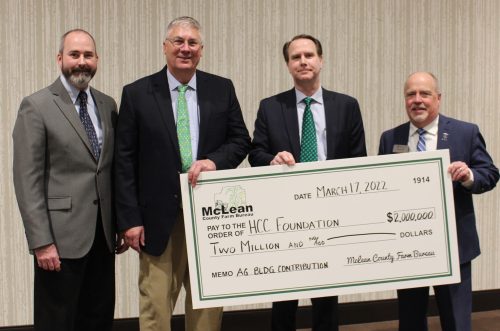 A $2 million pledge from McLean County Farm Bureau to the Heartland Community College Foundation represents the first substantial local investment in the college’s forthcoming agricultural facility project.
