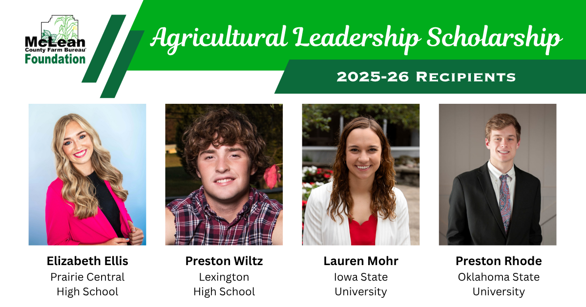 The McLean County Farm Bureau Foundation is pleased to announce the 2025 scholarship recipients. A total of $13,500 has been awarded to eight outstanding students pursuing careers in agriculture-focused fields. … Read More
